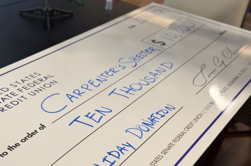 The United States Senate Federal Credit Union (USSFCU) is pleased to announce our $10,000 donation to Carpenter’s Shelter in Alexandria, VA.